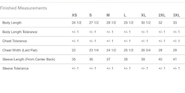 Please refer to these size charts when choosing your Camp Sweatshirt size.