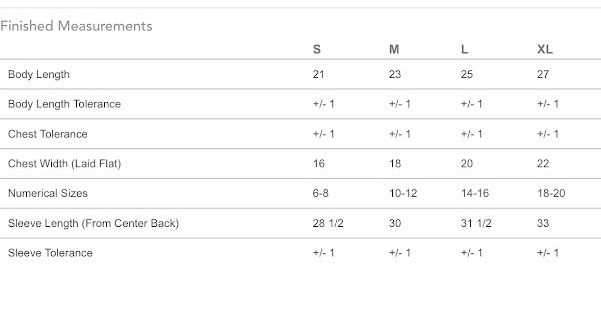 Camp Sweatshirt Size Chart